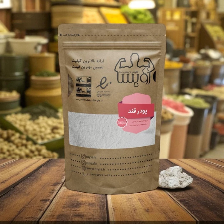 • 🔹 پودر قند بسیار نرمتر از شکر است و به راحتی در هر دمایی با آب، روغن یا کره مخلوط میشود.