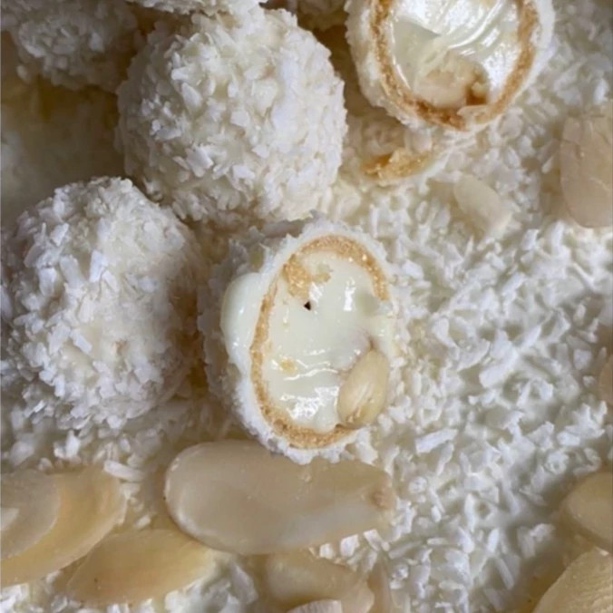 در هنگام لمس، کمی حالت روغنی دارد که نشاندهنده وجود چربی طبیعی نارگیل است — دقیقاً همان چیزی که به آن طعم و عطر واقعی میدهد.