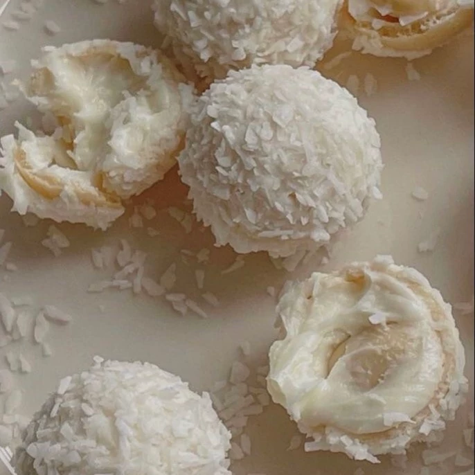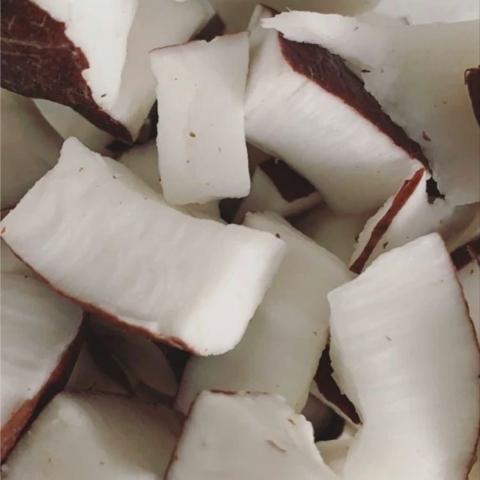 در هنگام لمس، کمی حالت روغنی دارد که نشاندهنده وجود چربی طبیعی نارگیل است — دقیقاً همان چیزی که به آن طعم و عطر واقعی میدهد.