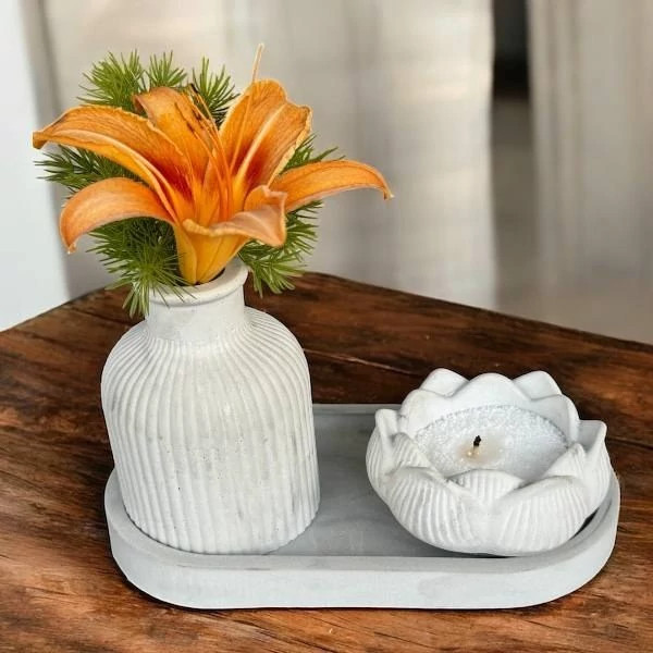 ست دکوری مینیمال مونولیزا با سه جزء اصلی: گلدان، سینی و جا شمع، انتخابی بینقص برای کسانیست که به زیبایی بیادعا و نظم بصری علاقهمندند.