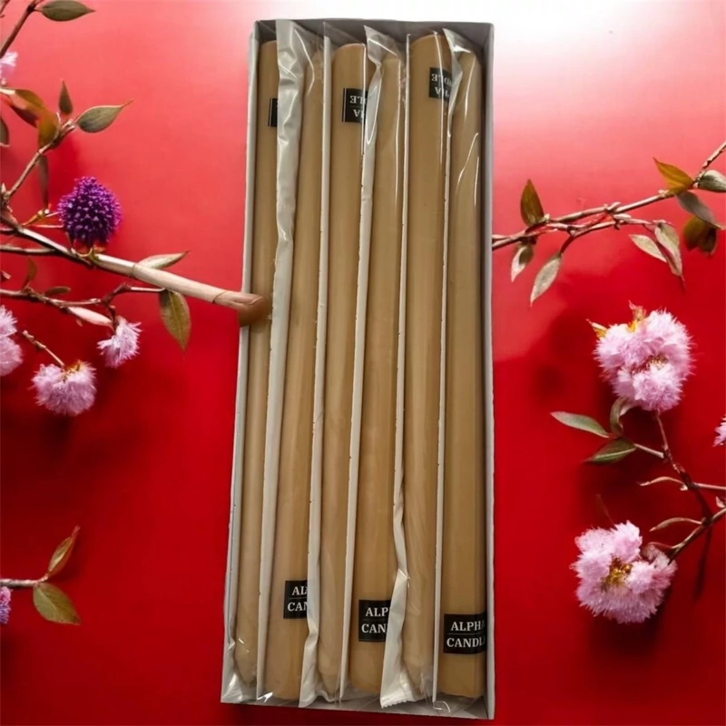 شمعهای مدادی کرم نسکافه ای با طول 30 سانت و طراحی باریک و بلند خود بهراحتی در هر محیطی جای میگیرند. این شمعها میتوانند بهعنوان نقطه مرکزی در دکوراسیون داخلی منزل یا هر نوع مراسم استفاده شوند. طراحی مدادی آنها باعث میشود که نور شمع بهطور یکنواخت و ملایم در فضا پخش شود.