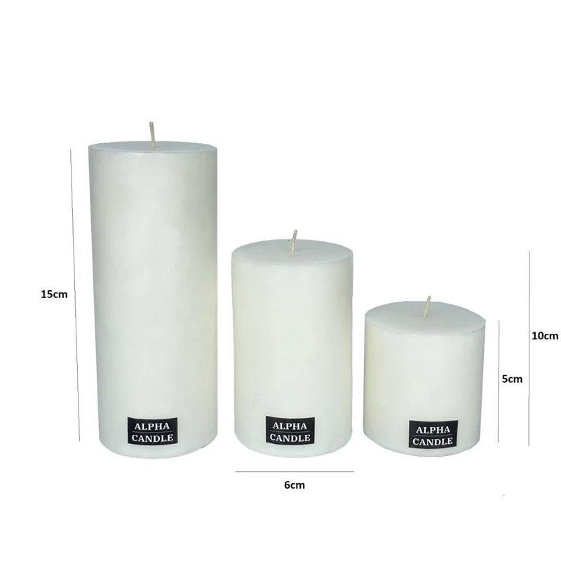 شمع استوانه سه سایز سفید قطر 6.5 مونالیسا