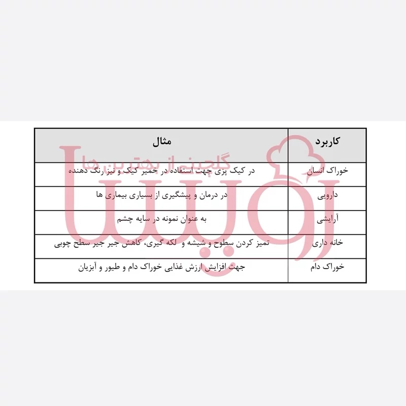 • طعم سرد و خشک: طعمی طبیعی و خوشطعم که به انواع غذاها طعمی خاص و دلچسب میبخشد.